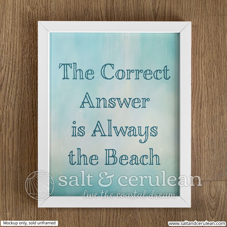 Always the Beach. Whenever anyone asks, the correct answer is always the beach. I understand that sometimes a “picture” isn’t what your space needs, so I turned some of my favorite coastal themed quotes into beautiful works of art. Hang them anywhere you need a reminder. Museum-quality posters made on thick and durable matte paper. Add a wonderful accent to your room and office with these posters that are sure to brighten any environment.