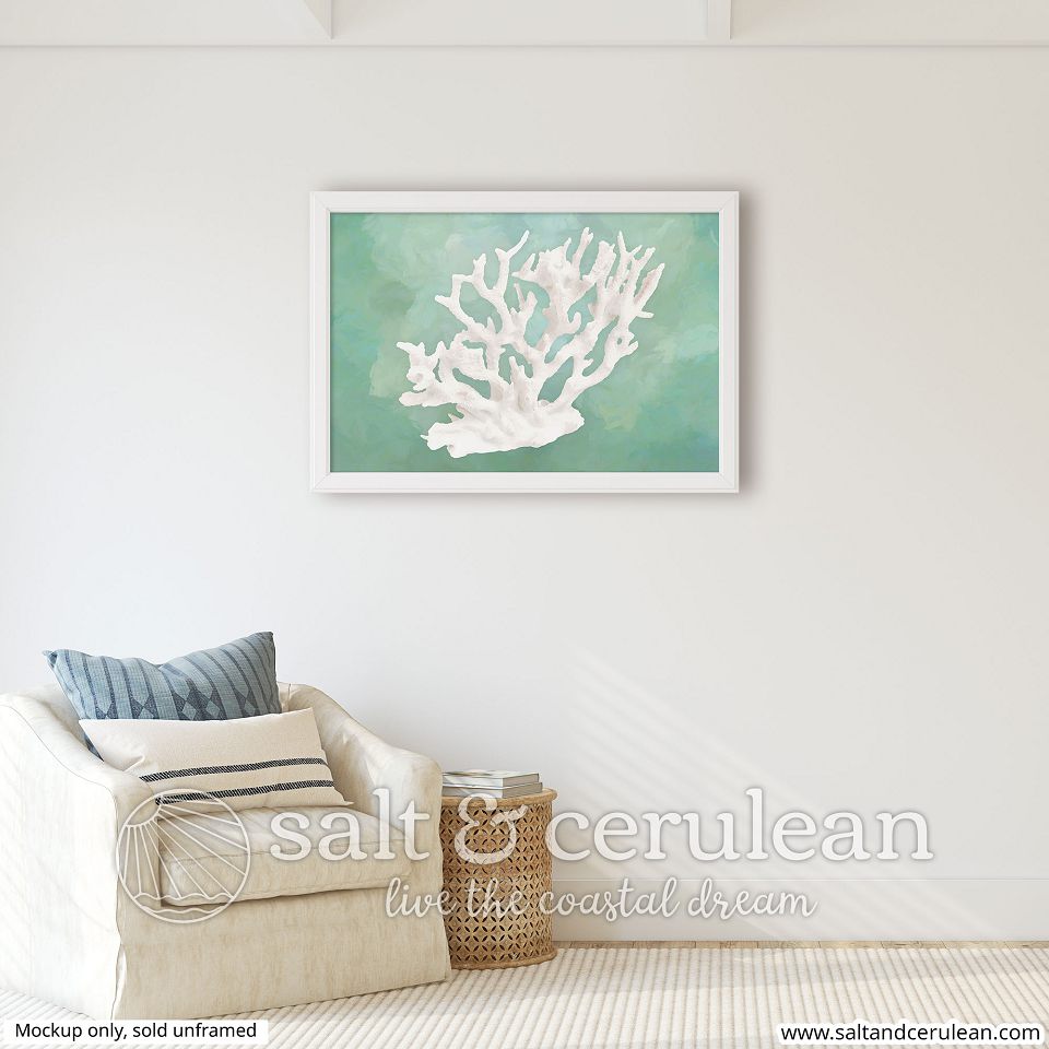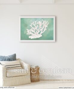 Coral on Green is part of a popular series that can stand just as well on it’s own in any space. Soothing colors with the activity of the coral catch the eye without always demand attention every time you walk into the room. Museum-quality art prints made on thick and durable matte paper. Add a wonderful accent to your room and office with these prints that are sure to brighten any environment.