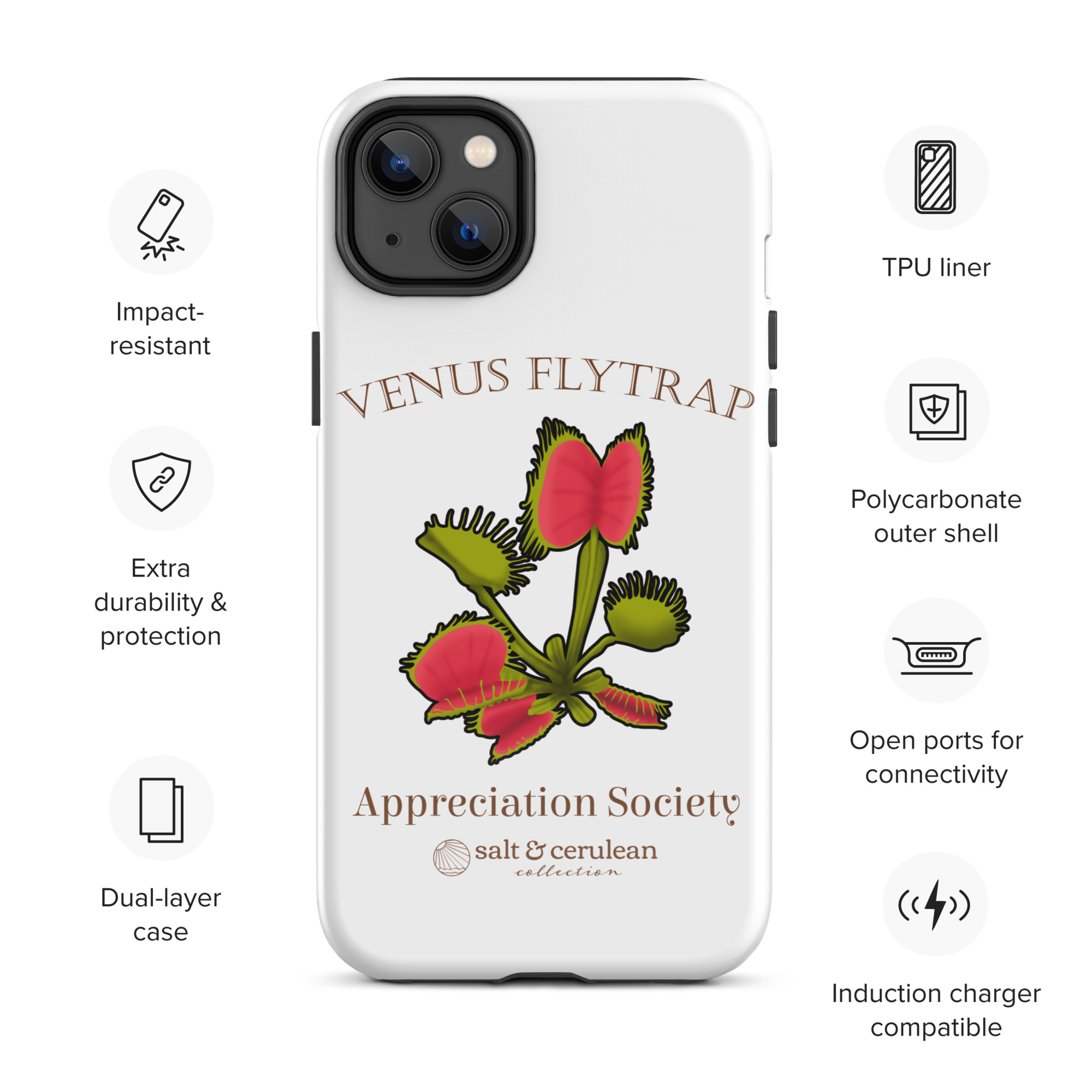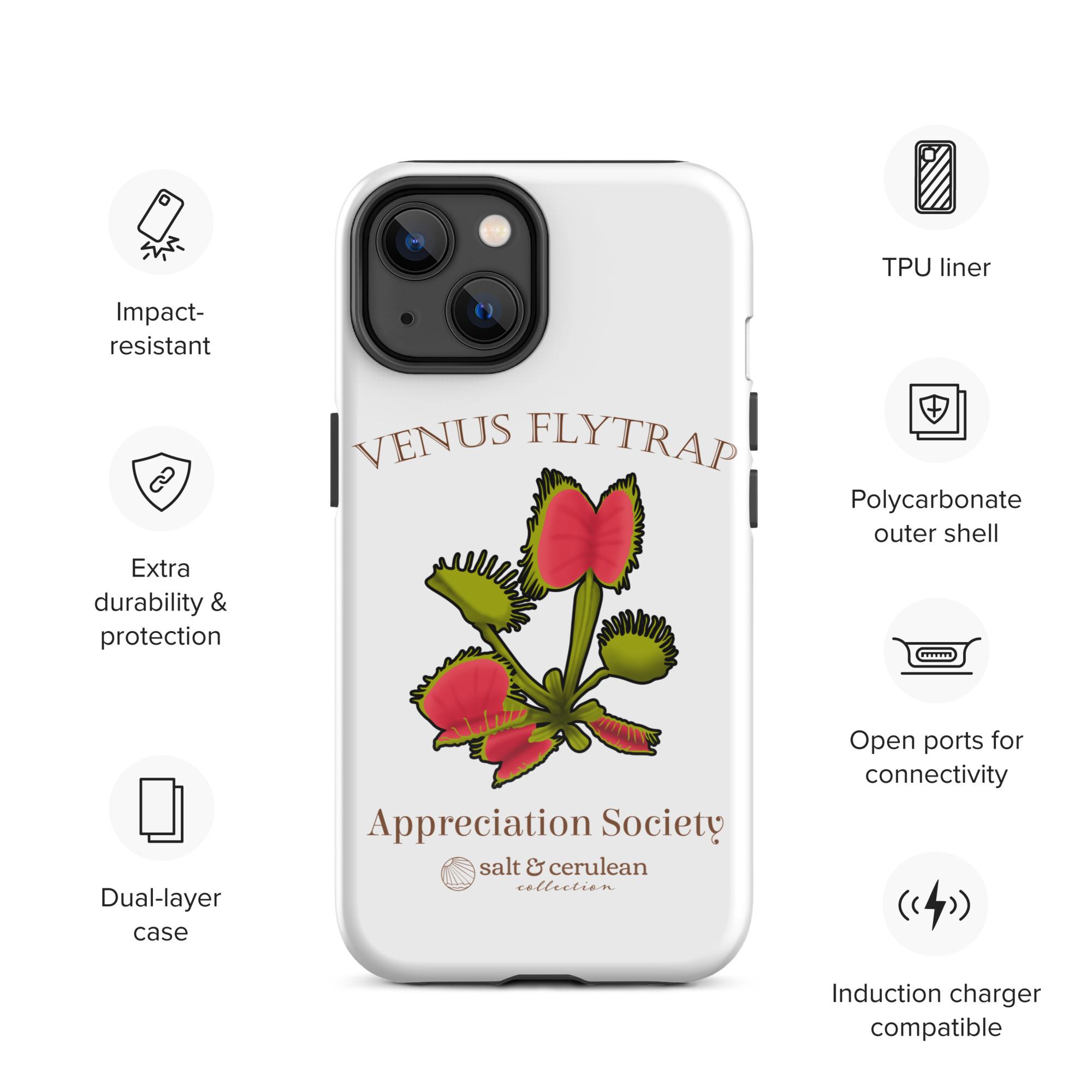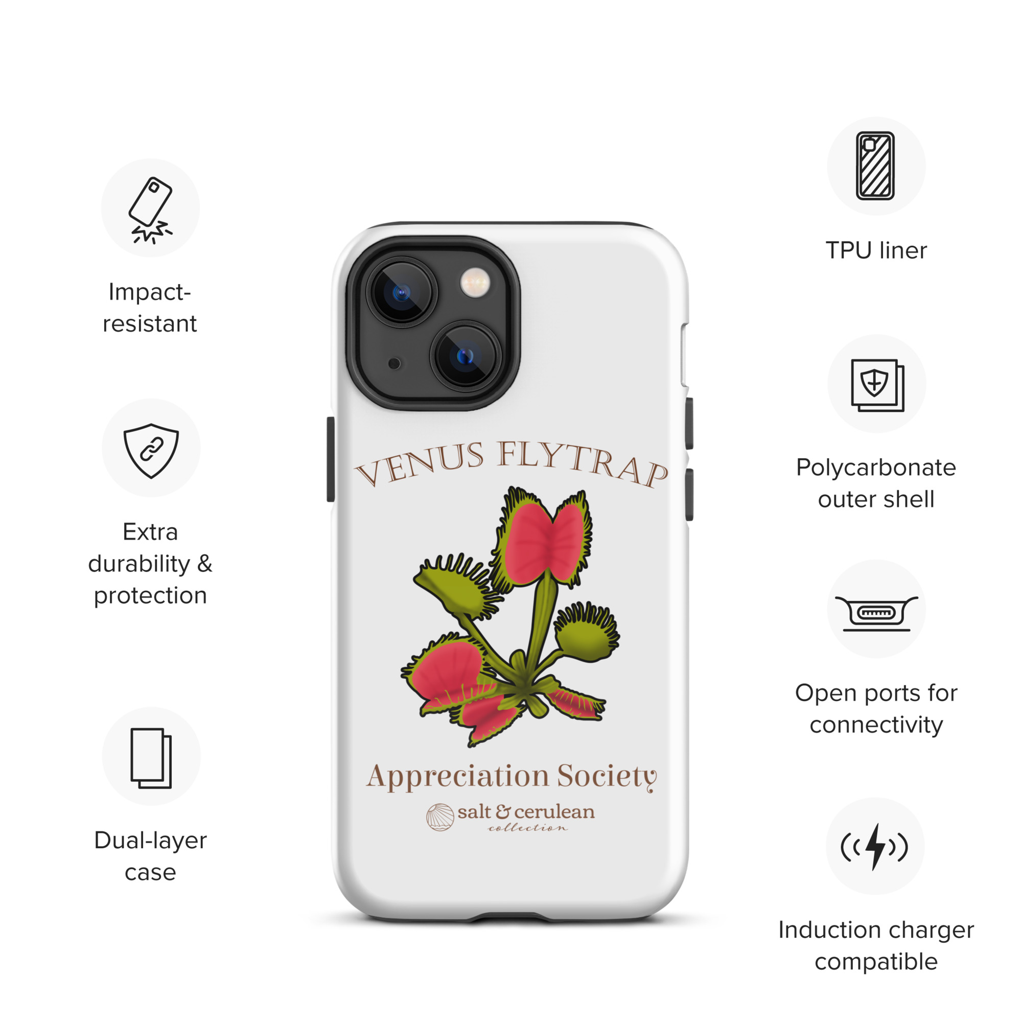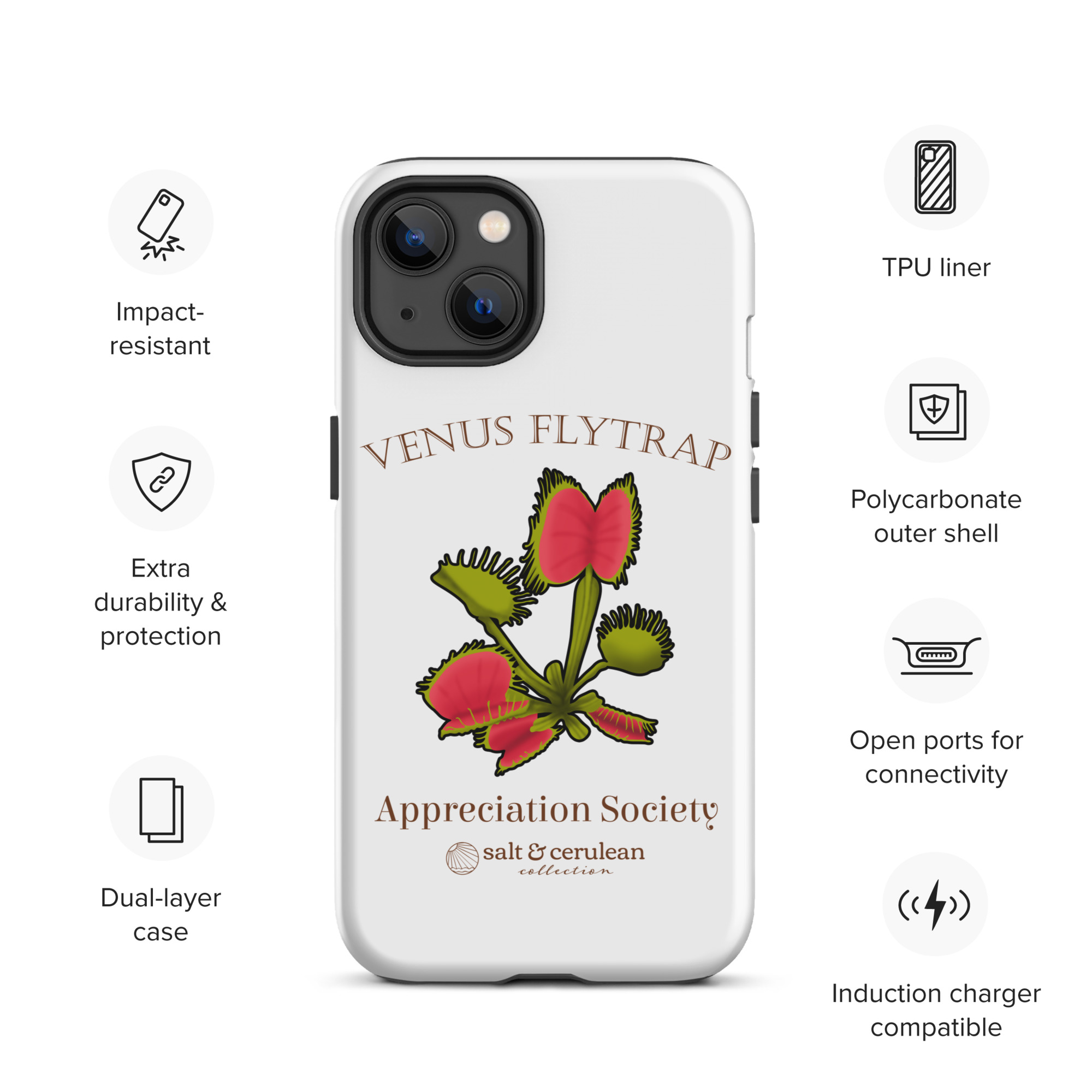 Keep your phone stylish and safe with our durable dual-layered case. The tough outer shell is built from impact-resistant polycarbonate, while the soft TPU lining cushions against drops and bumps. It’s the perfect blend of fashion and protection to keep your phone looking great, season after season.