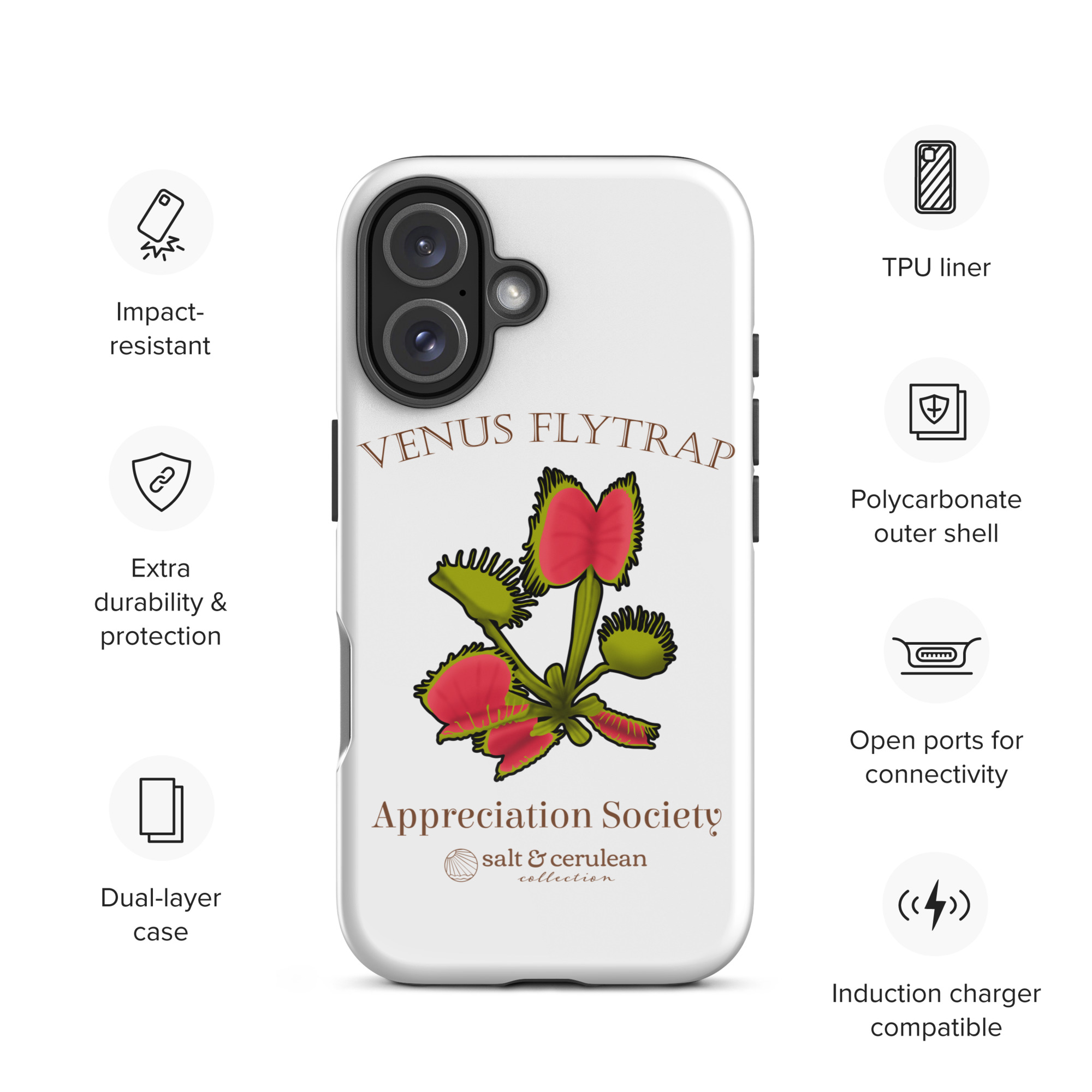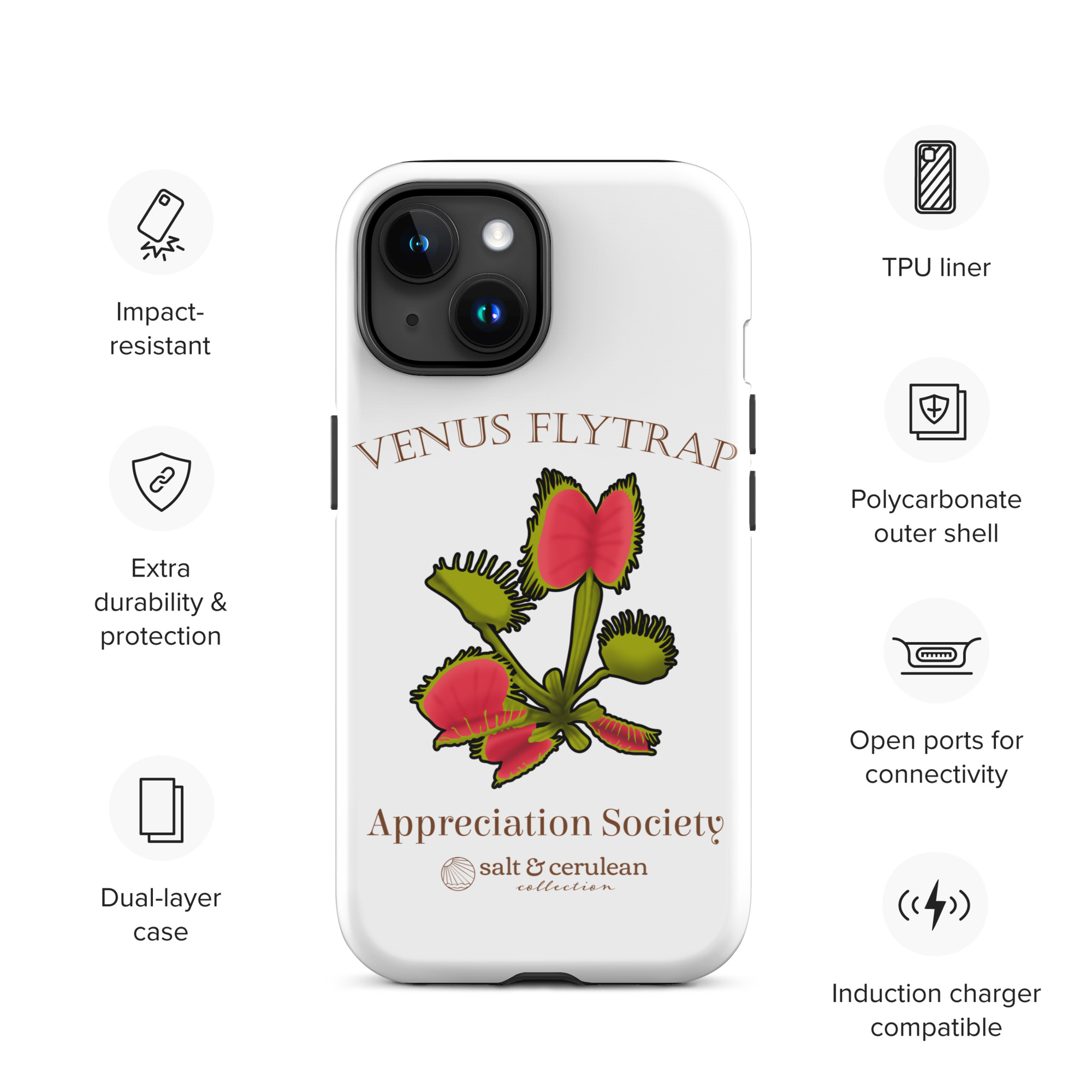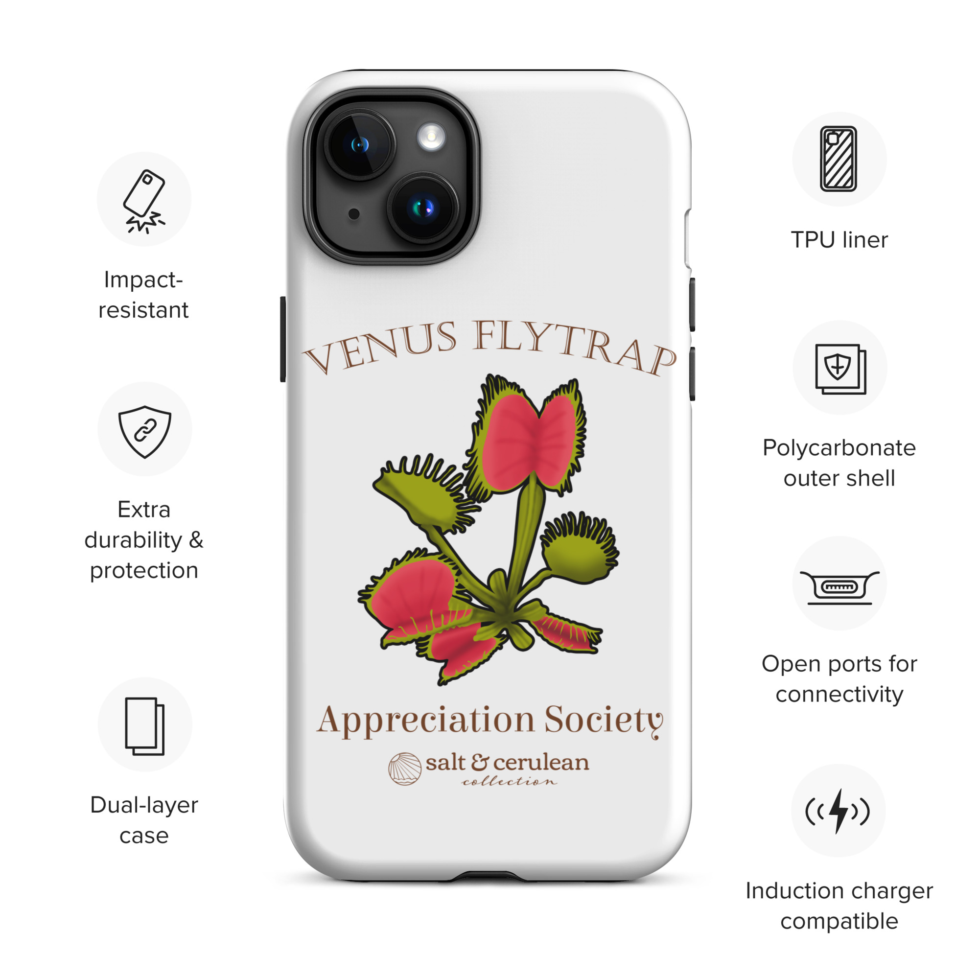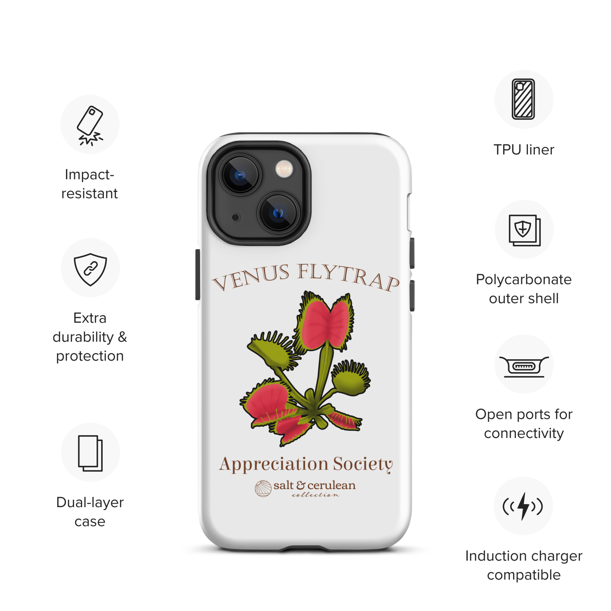 Keep your phone stylish and safe with our durable dual-layered case. The tough outer shell is built from impact-resistant polycarbonate, while the soft TPU lining cushions against drops and bumps. It’s the perfect blend of fashion and protection to keep your phone looking great, season after season.