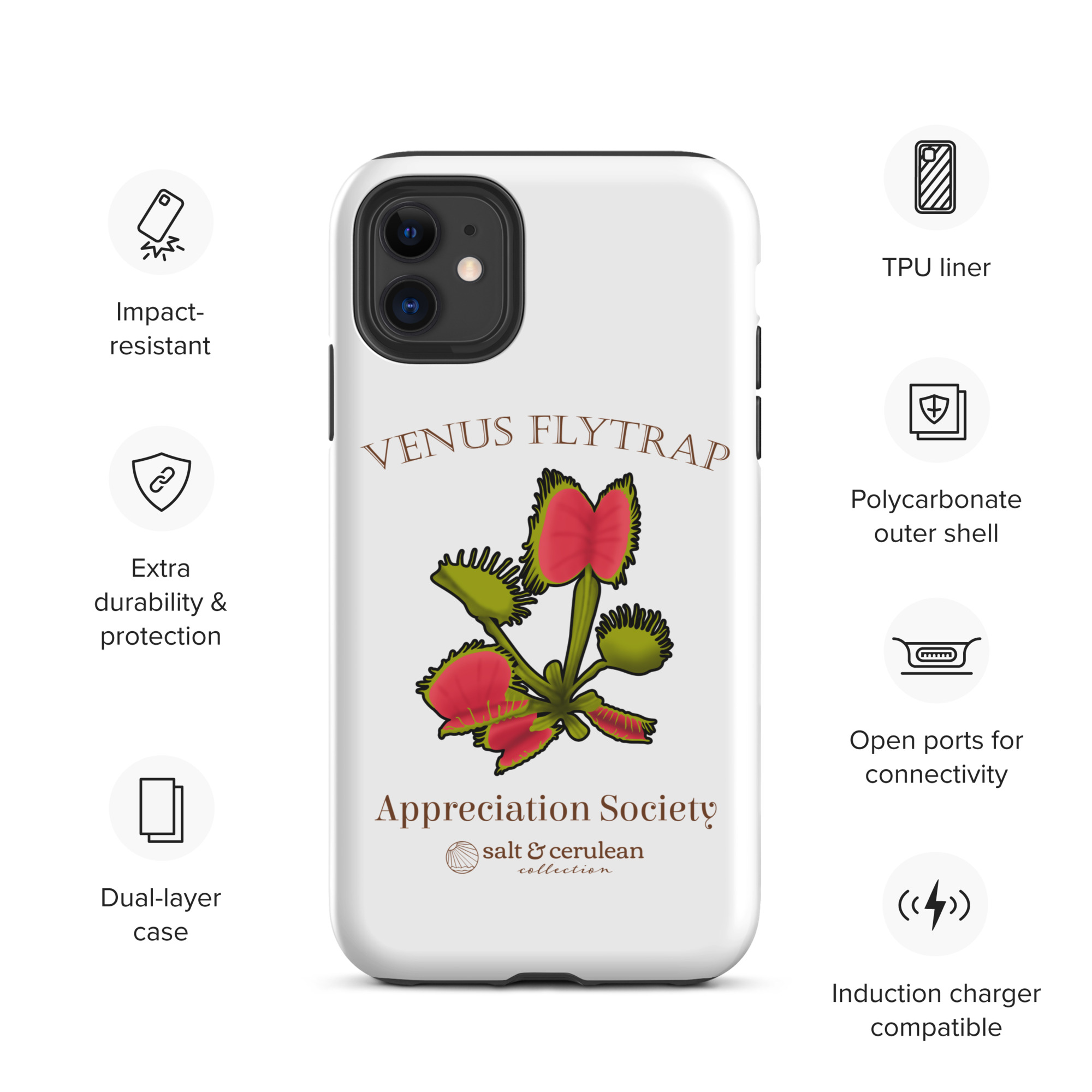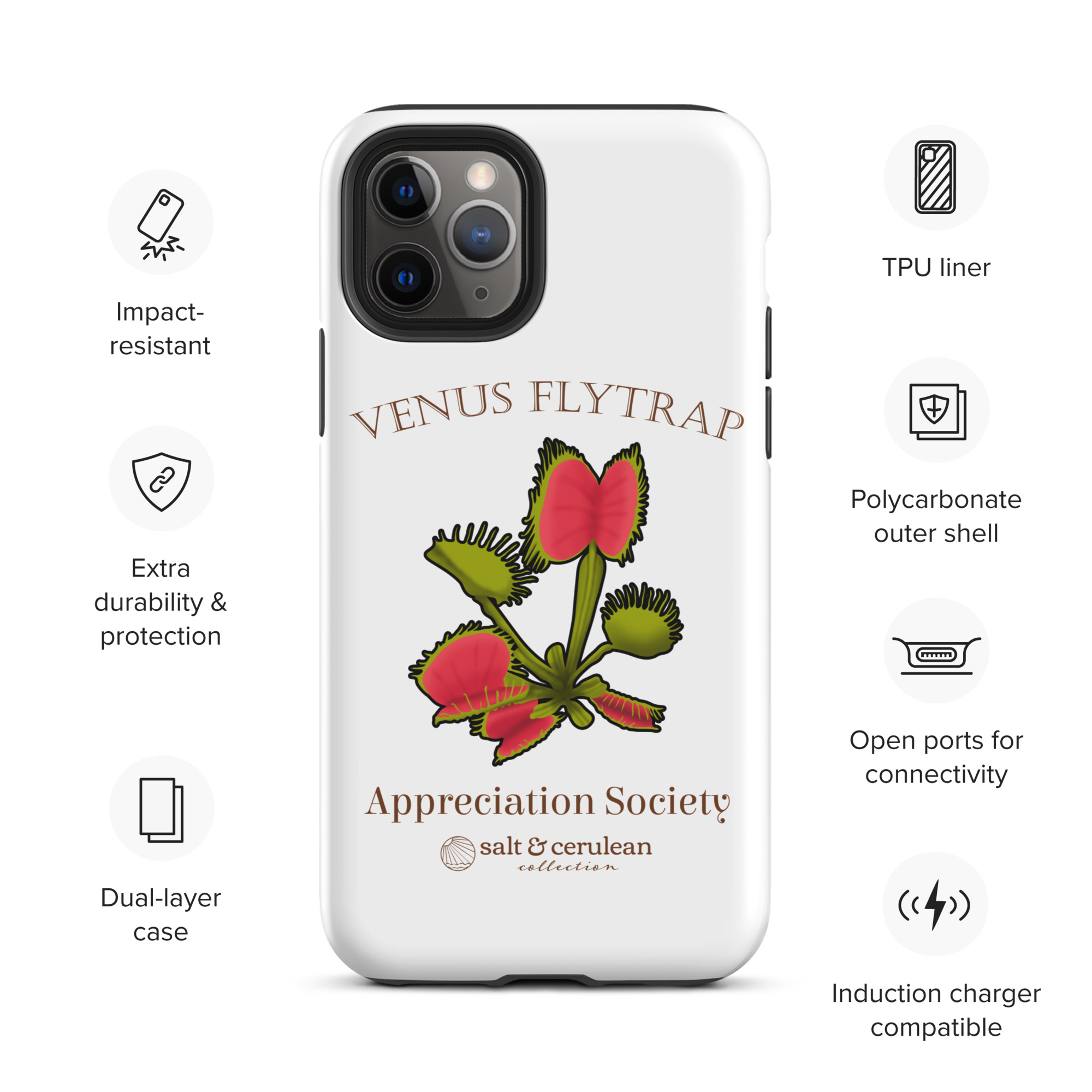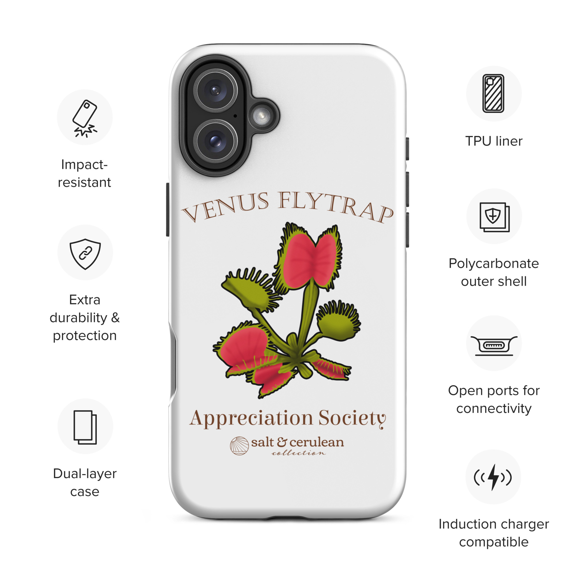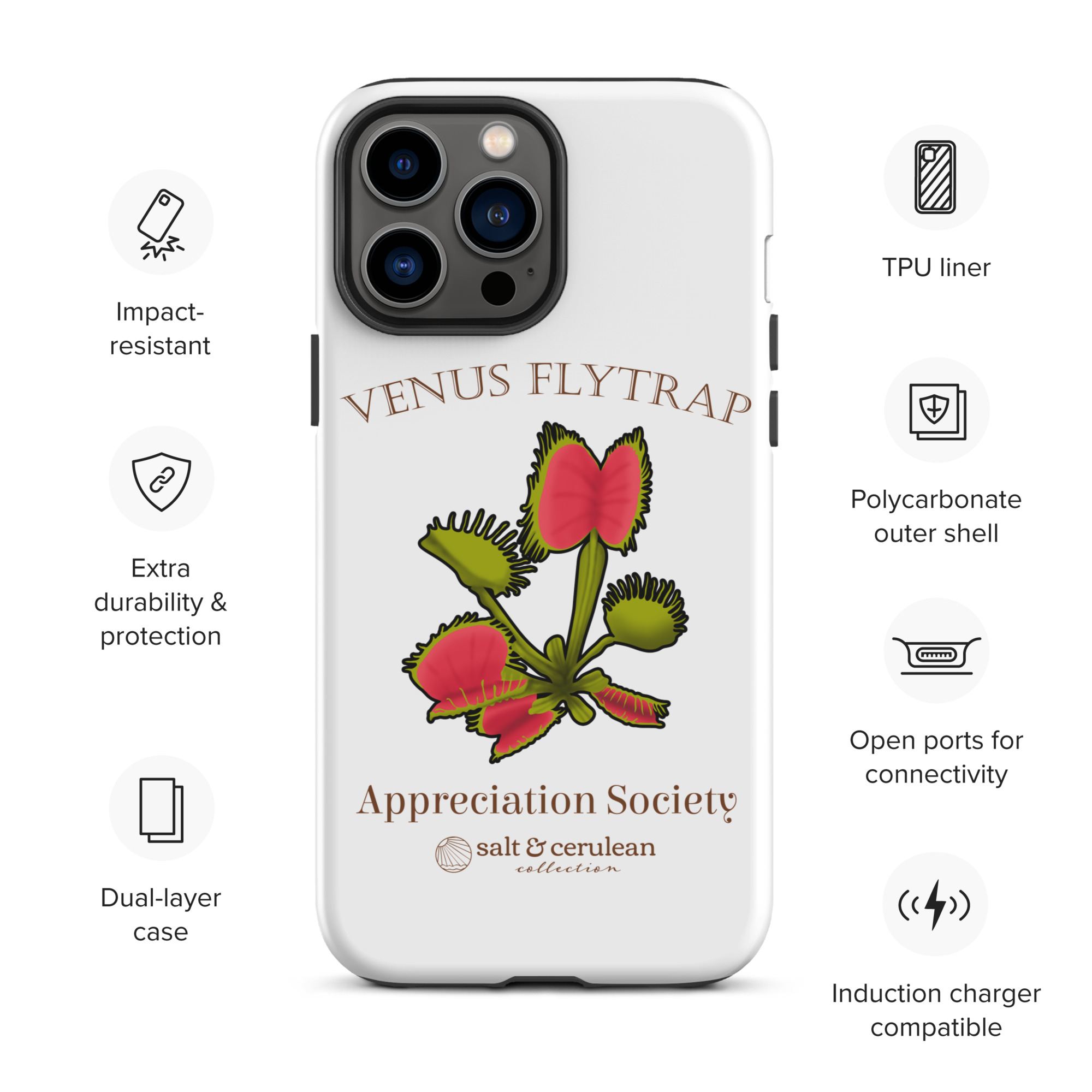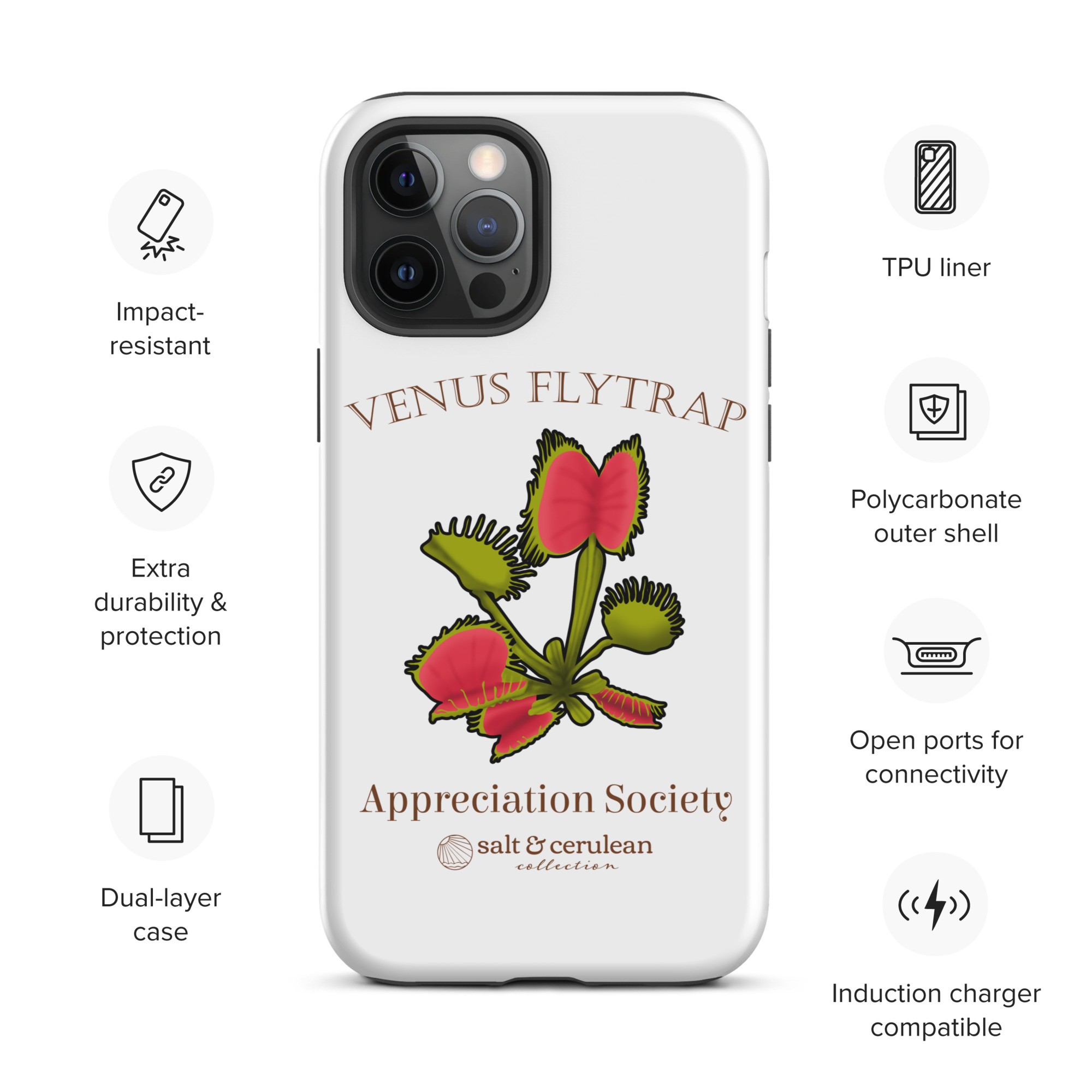Keep your phone stylish and safe with our durable dual-layered case. The tough outer shell is built from impact-resistant polycarbonate, while the soft TPU lining cushions against drops and bumps. It’s the perfect blend of fashion and protection to keep your phone looking great, season after season.