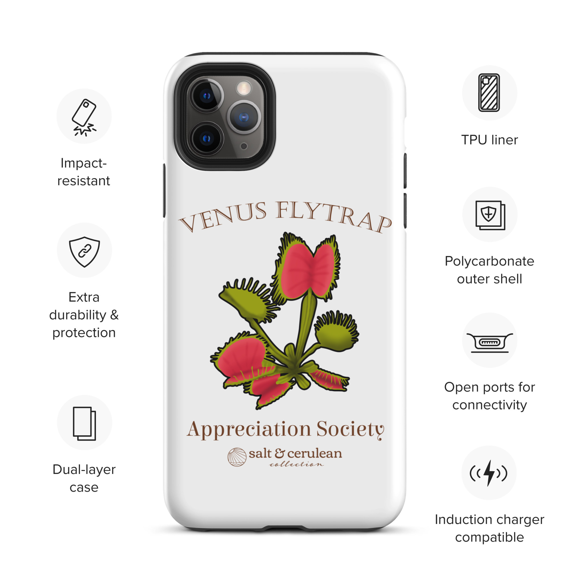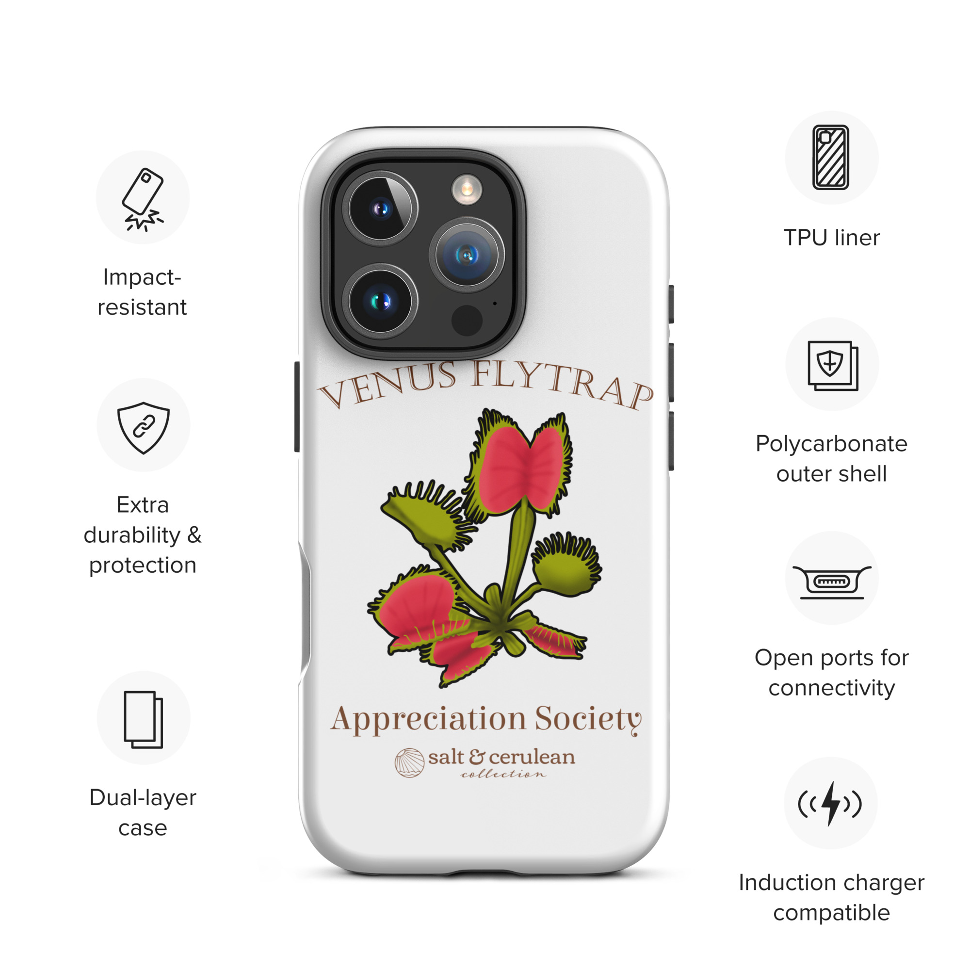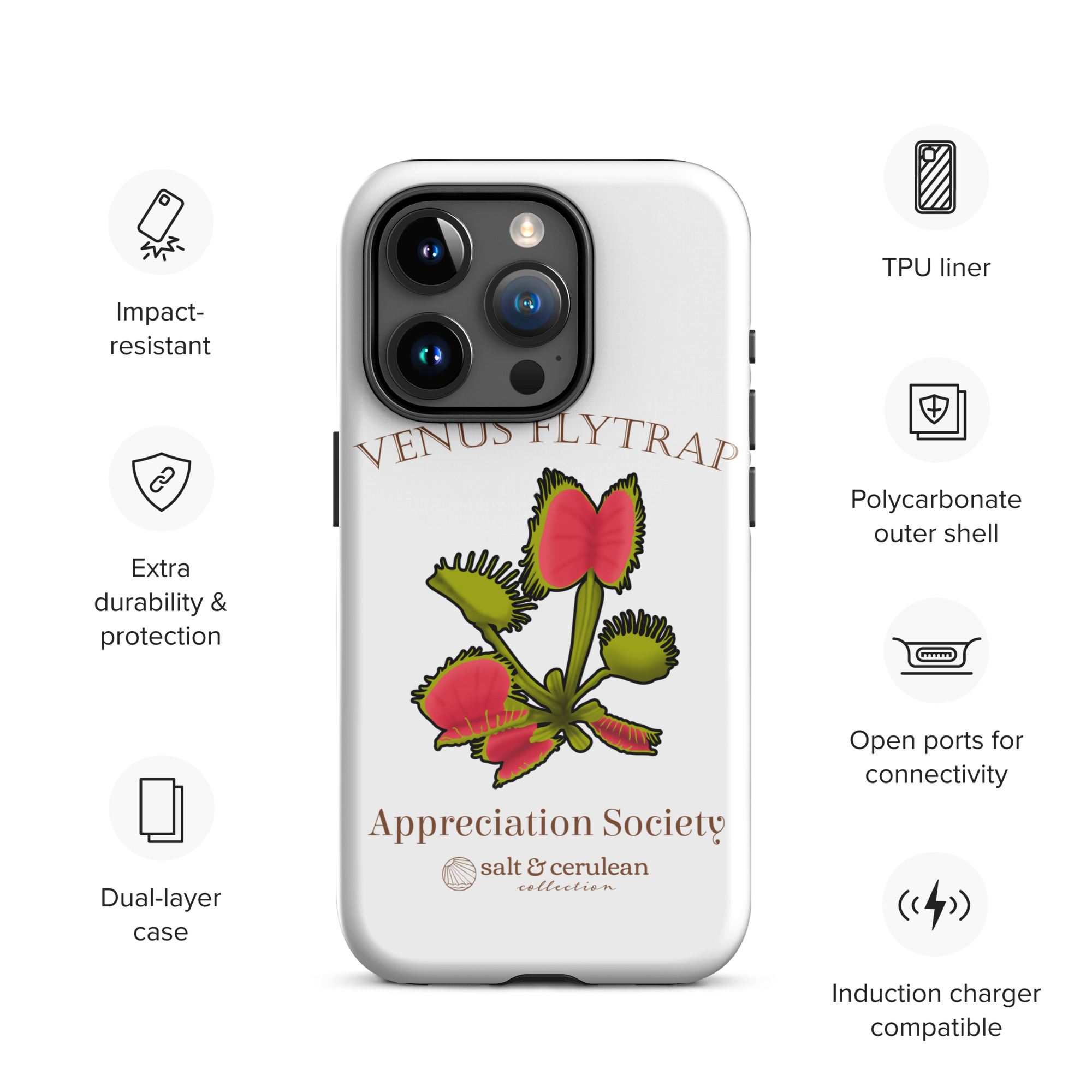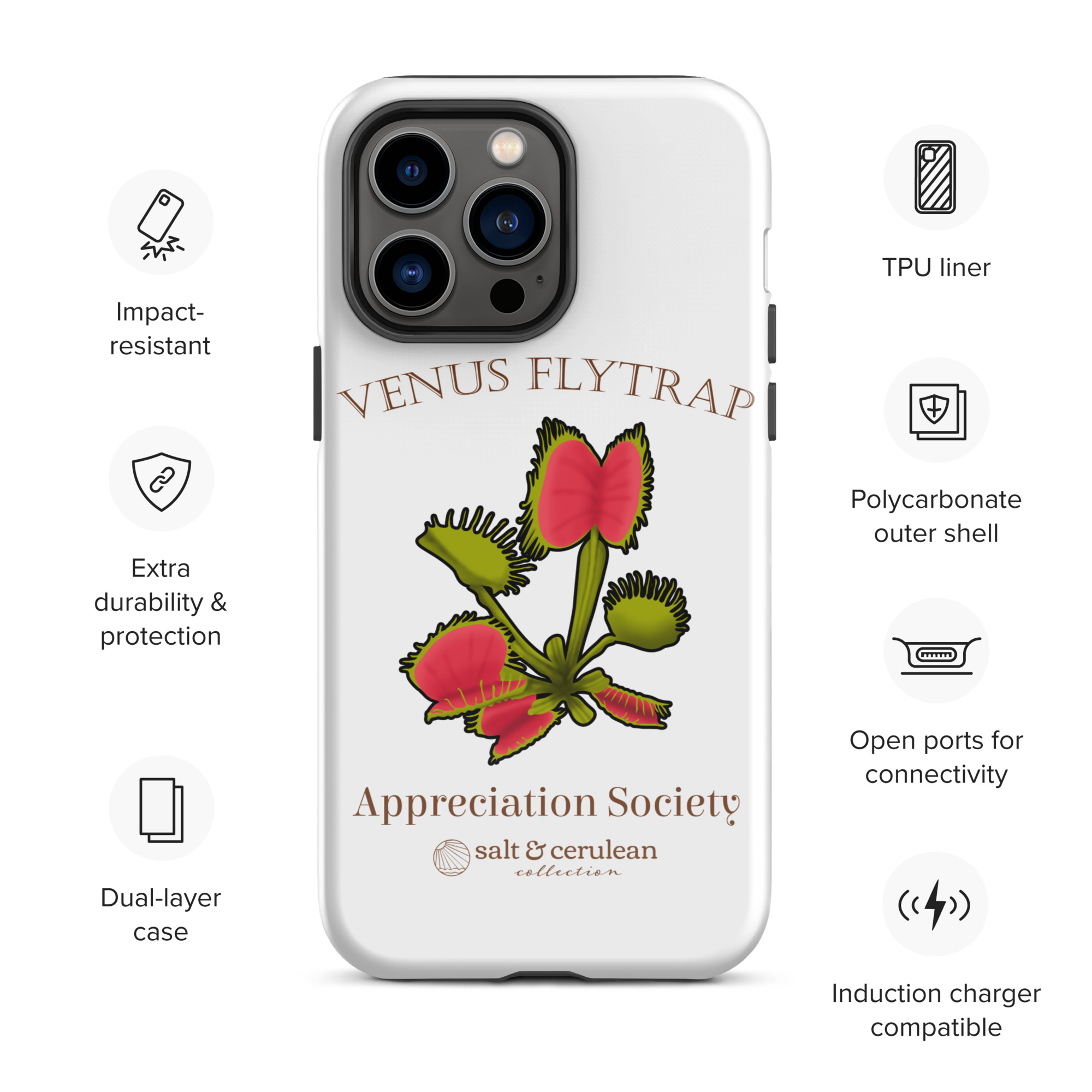 Keep your phone stylish and safe with our durable dual-layered case. The tough outer shell is built from impact-resistant polycarbonate, while the soft TPU lining cushions against drops and bumps. It’s the perfect blend of fashion and protection to keep your phone looking great, season after season.