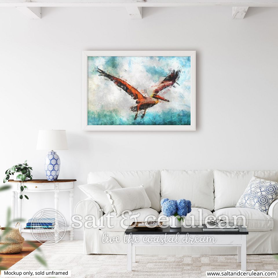 An impressionist pelican painting on museum-quality, thick, and durable matte paper. Add a wonderful accent to your room and office with these posters that are sure to brighten any environment.