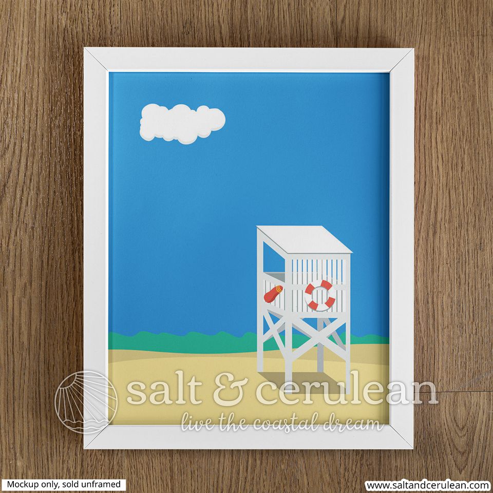 The Lifeguard Tower Seaside illustration is a museum-quality art print on thick matte paper. Add a wonderful accent to your room and office with these prints that are sure to brighten any environment.