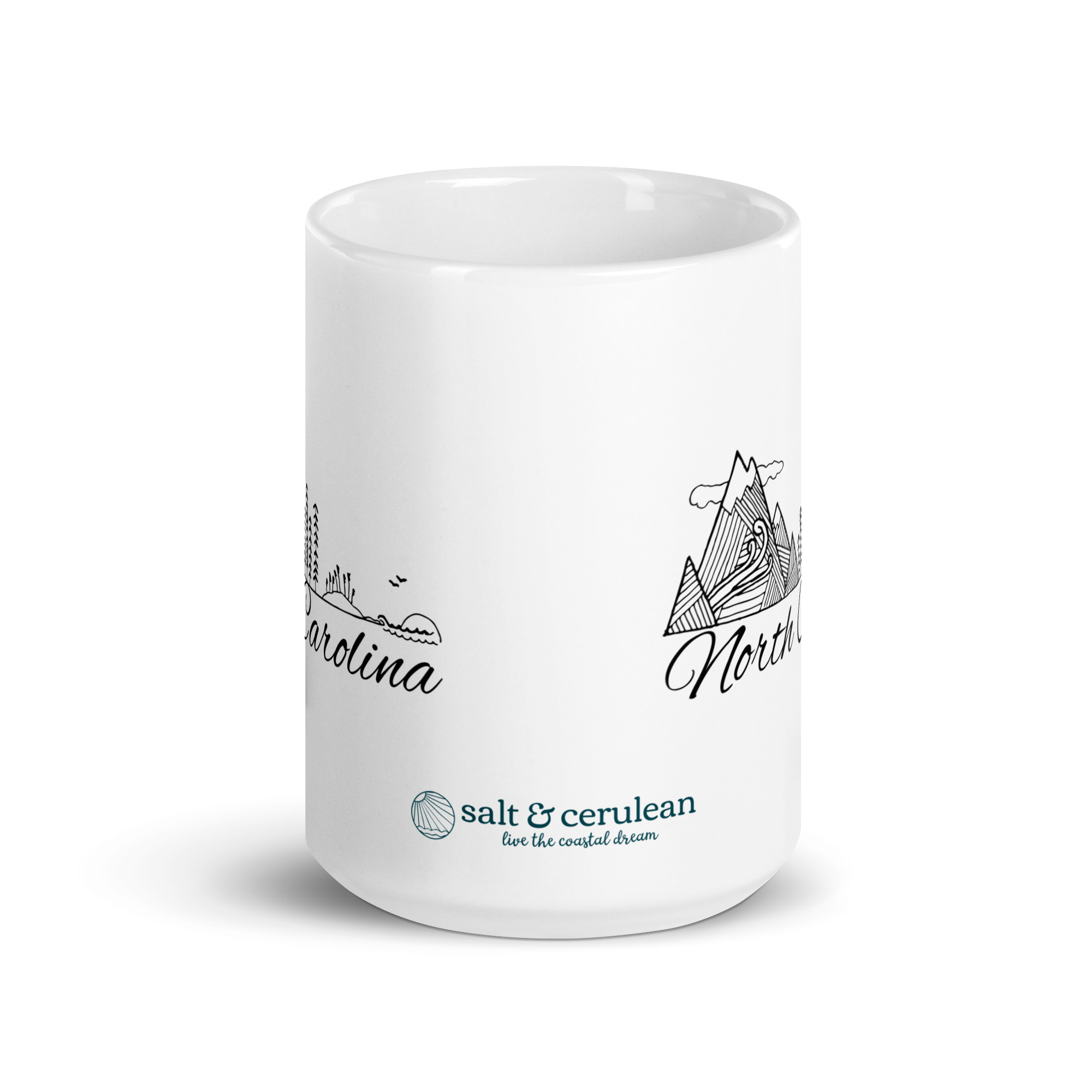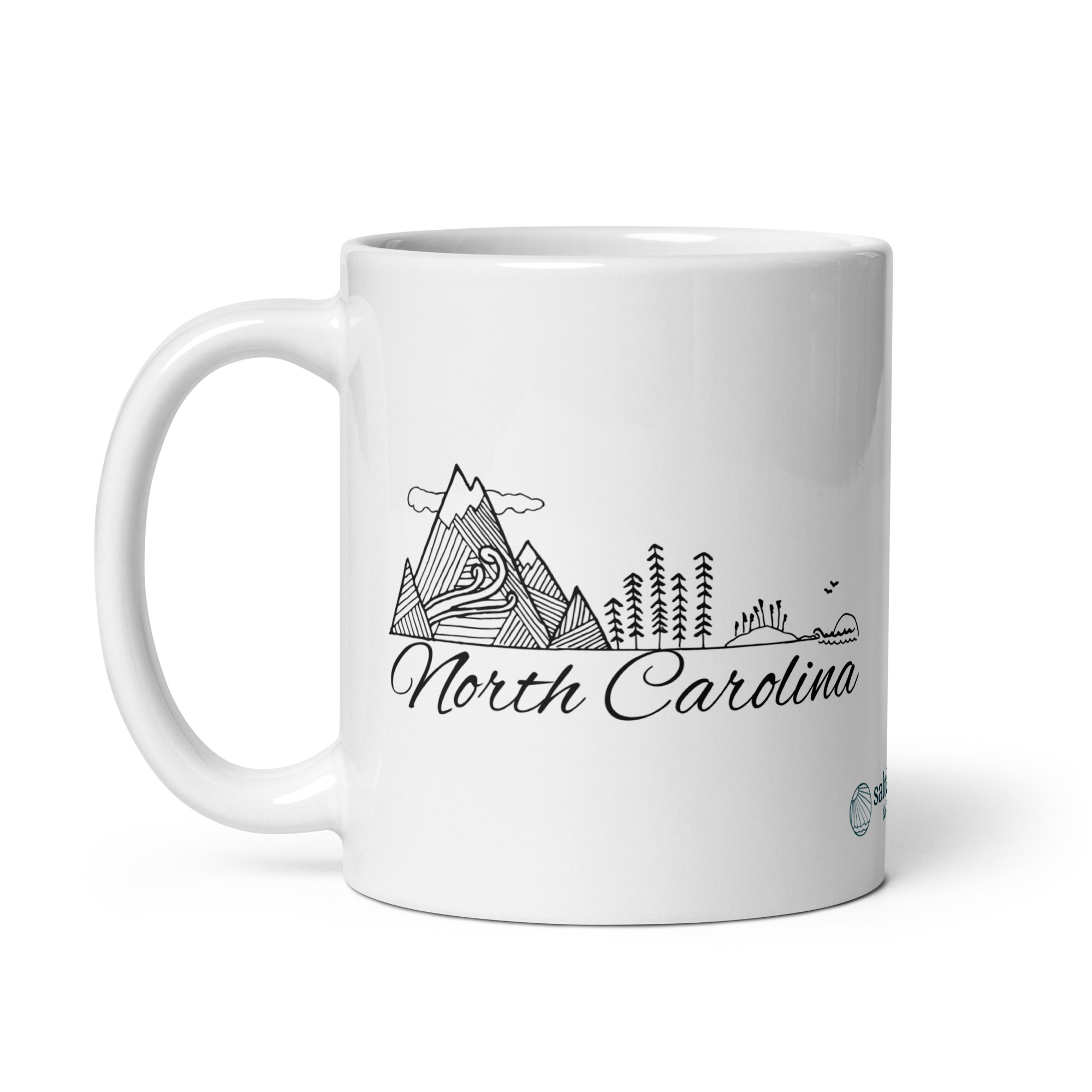 Whether you’re drinking your morning coffee, evening tea, or something in between – my Mountains to the Sea coffee mug is for you! It’s sturdy and glossy with a vivid print that’ll withstand the microwave and dishwasher. Design is on both sides!