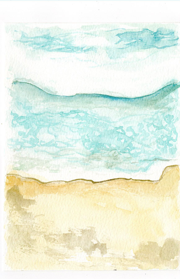 Fall for the lure of one of my favorite sounds in the world: the ocean surf. I do it a lot. I also know that there’s a good chance my shoes are going to get wet when I do. This little original watercolor painting is a friendly reminder to everyone who sees it: take a breathe and just listen. Listen to the ocean, worry less about the shoes.