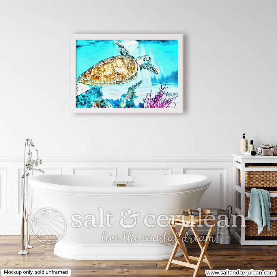 The Sea Turtle art has about as much color as one could hope to have packed into a single painting. No room is too dull or in need of color for this piece to handle!