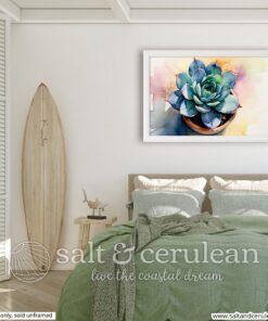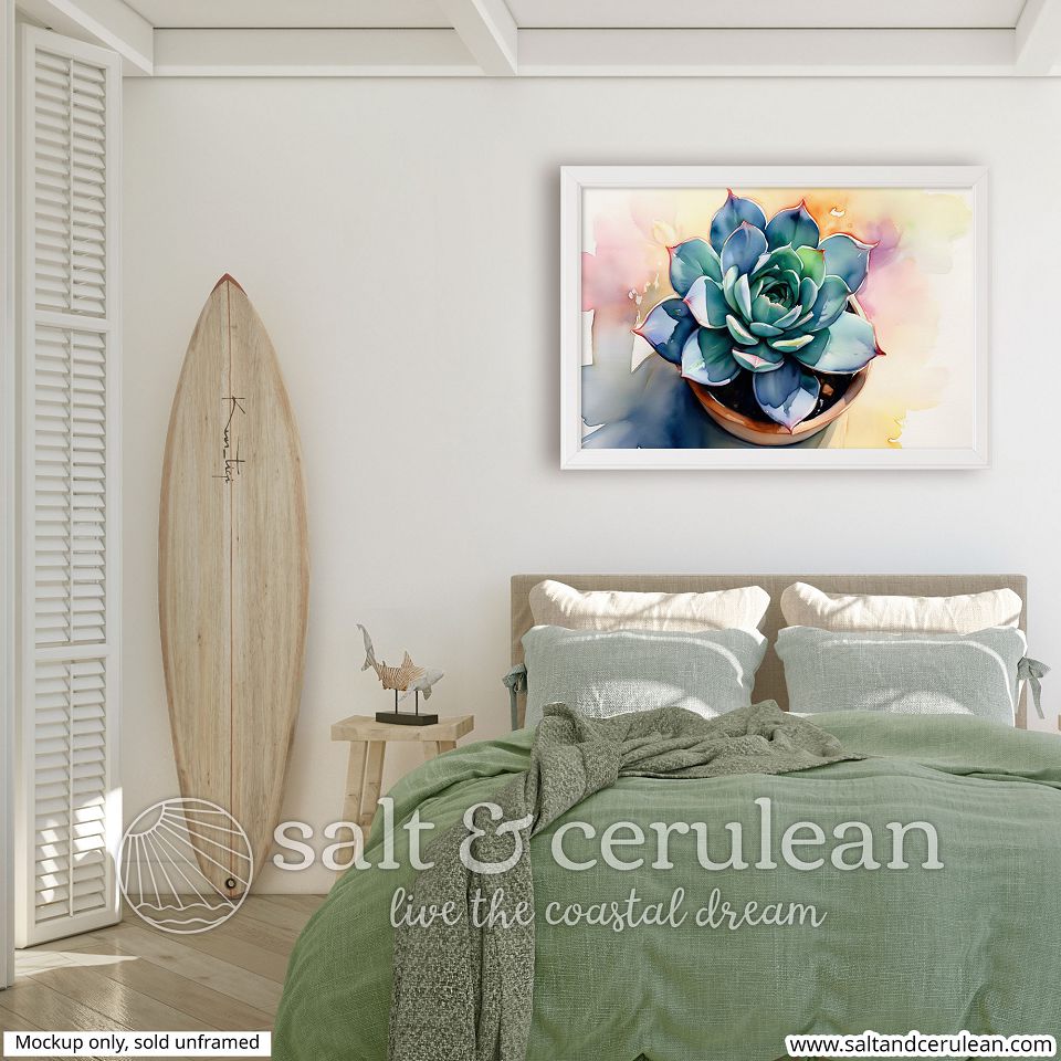 A sunny watercolor art print of a succulent plant. This print is a minimal and chic way to elevate your space. The artwork stands out from any angle as the matte museum-quality paper diffuses the light.