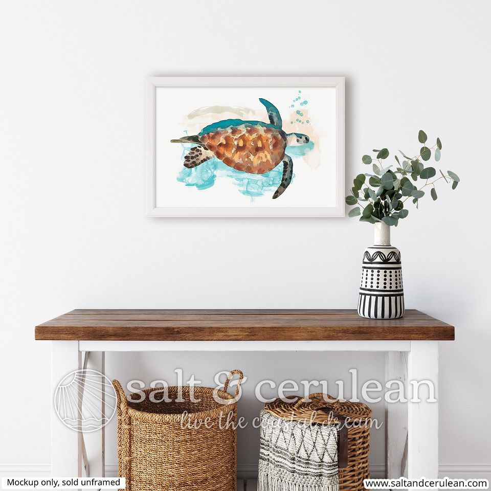 Turtleness might be a silly name, but you can’t deny the combination of cools and warms with those watercolor painting textures make this an ideal purchase to complete your coastal cottage. Museum-quality art prints made on thick and durable matte paper. Add a wonderful accent to your room and office with these prints that are sure to brighten any environment.