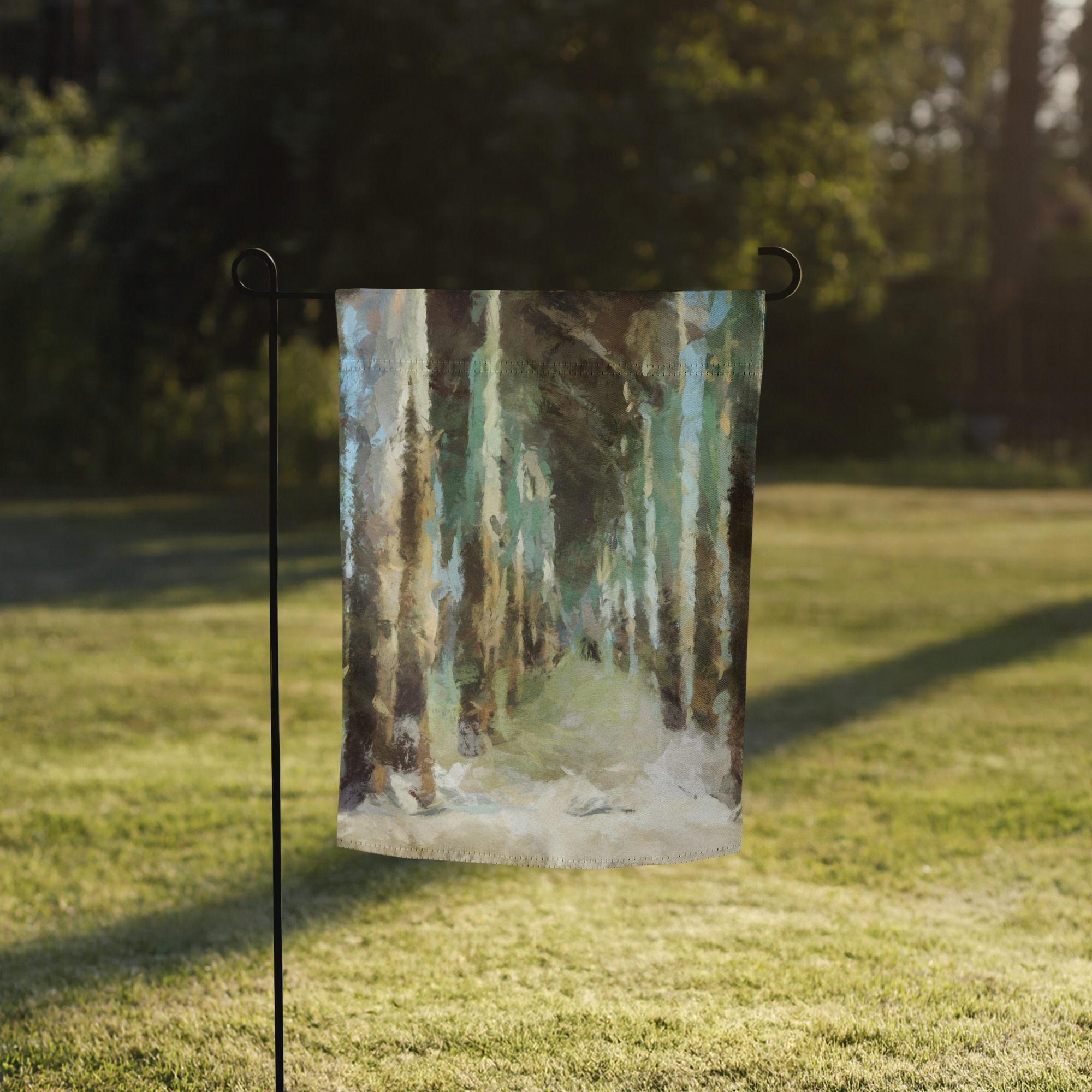 Capture the feeling of a quiet morning under the pier with this serene garden flag. Soft strokes of blue, green, and sandy hues evoke a sense of tranquility as you gaze through the towering pillars toward the open ocean. This flag is perfect for anyone wanting to bring a touch of coastal calm to their garden or patio, making it an inviting space for reflection. Whether you live by the sea or simply dream of it, this flag brings the soothing rhythm of the coast to your outdoor space.